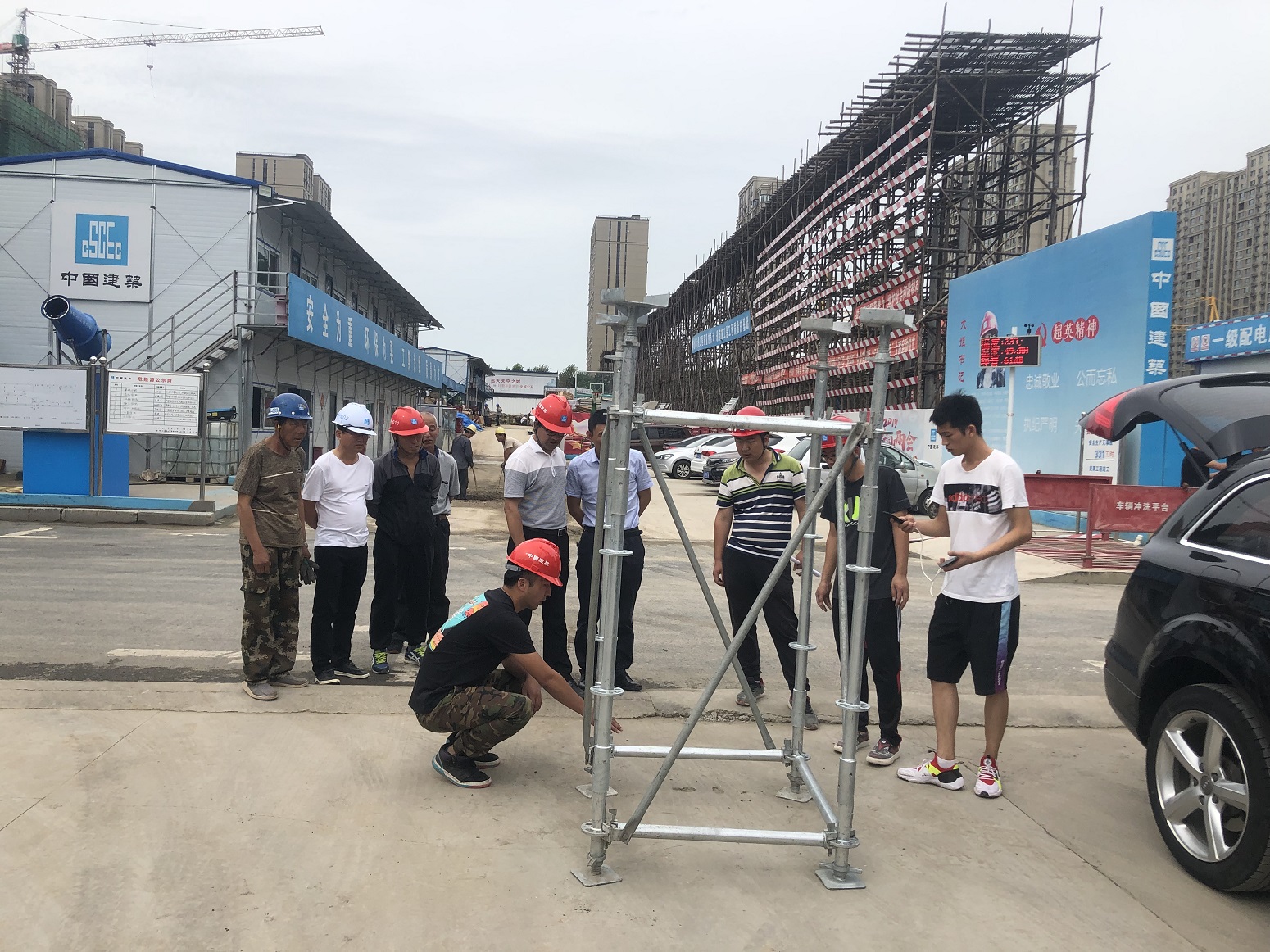 我公司工程部经理王小猛和技术部经理李江全程陪同并参与脚手架的的搭设,在院长刘海卿的指导下,并给出很好的建议和数据反馈,为后期的技术搭设提供了很大帮助。